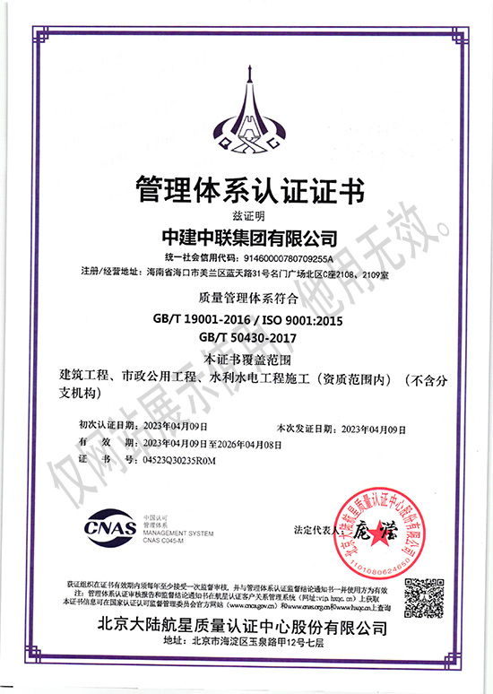 質量管理體系認證證書